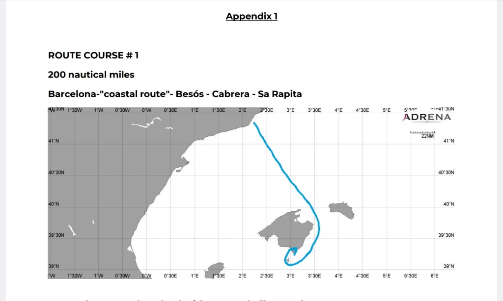 Étape 1, départ le 6 Mai : Barcelone – Sa Rapita (île de Majorque), 200 milles.